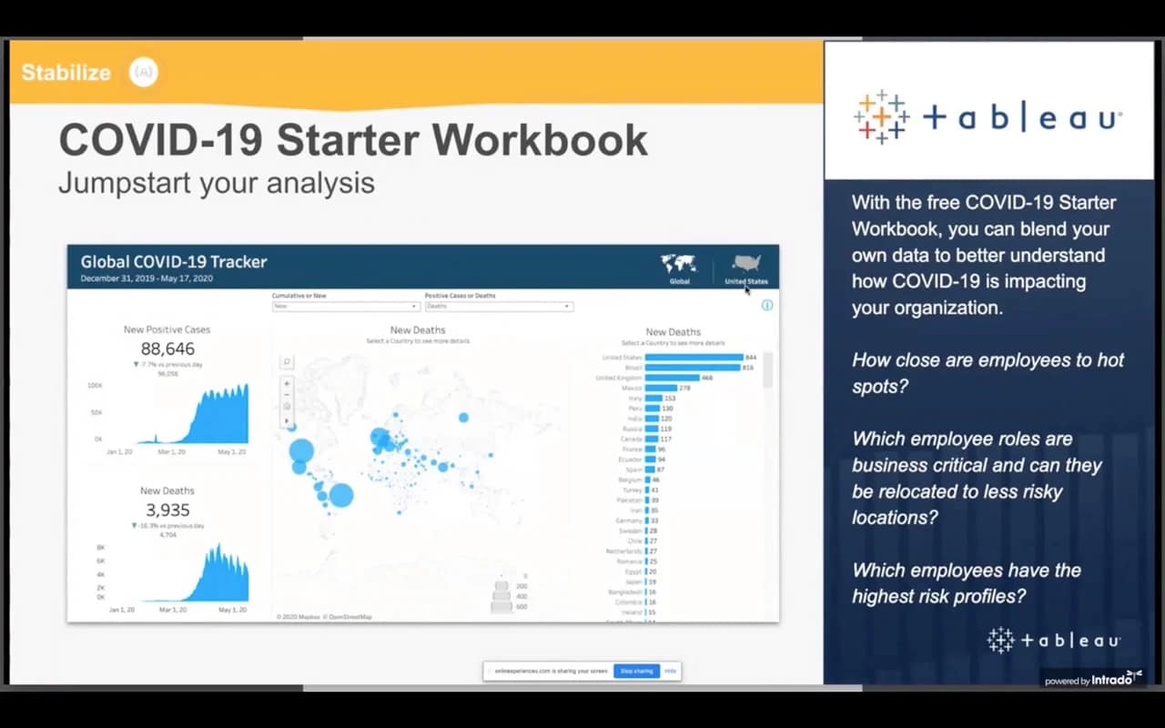 Successivamente Tableau ha pensato di fare un ulteriore passo avanti e sviluppare una soluzione plug and play che consenta a chiunque di combinare facilmente i dati dei casi di Coronavirus con i propri dati aziendali per comprendere meglio l’impatto del COVID-19 sulla propria organizzazione.