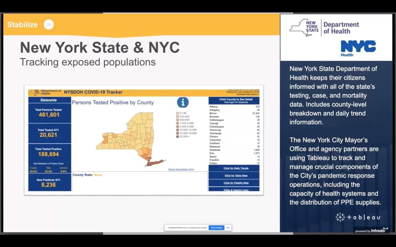 Le organizzazioni governative negli Stati Uniti come la città di Boston, la King County di Seattle e i governi statali in California e New York si rivolgono a Tableau per comunicare l’impatto dei virus sulle loro comunità e per prendere decisioni sulle misure di distanziamento sociale.